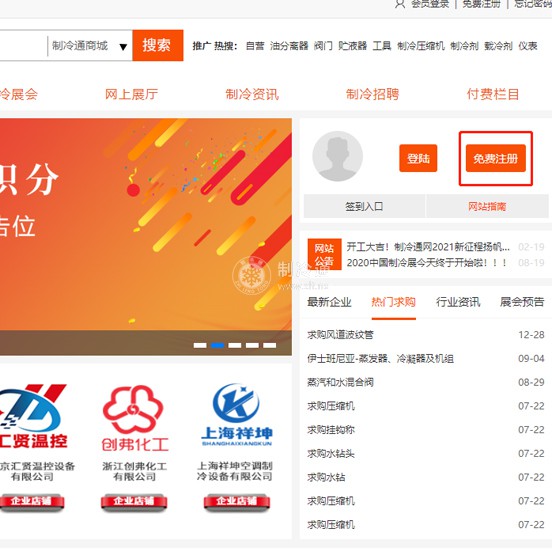 第一步:點擊網站首頁右上角的免費注冊