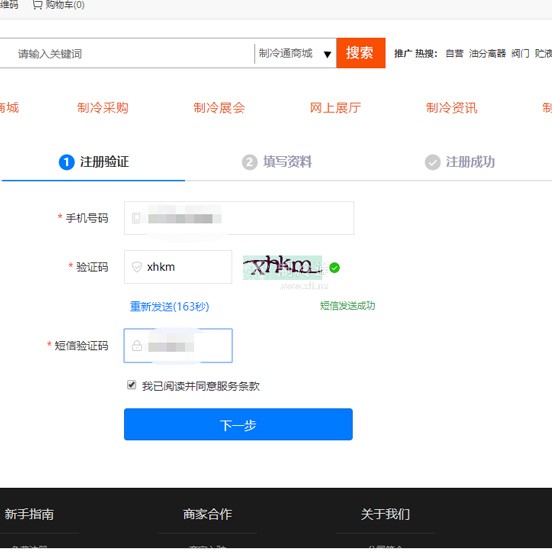 第二步:填寫手機號進行注冊驗證