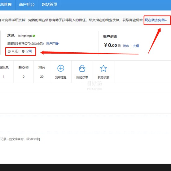 第四步:點擊選擇完善公司基本信息/上傳營業執照進行企業認證 (兩項都要完成)