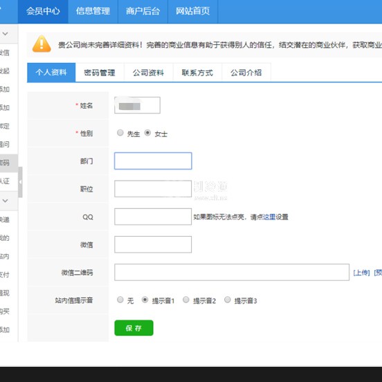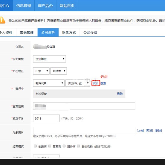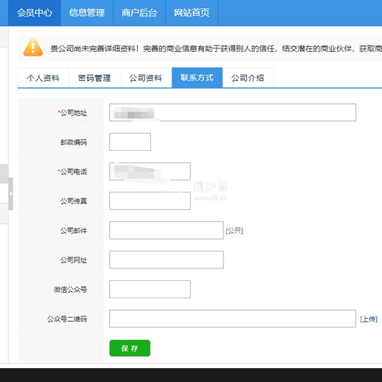 注意:逐項完善公司信息并保存