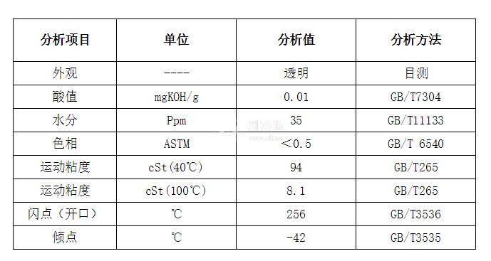 - 優良的化學穩定性和熱穩定性,換油期限比礦物油長與礦物油完全兼容。