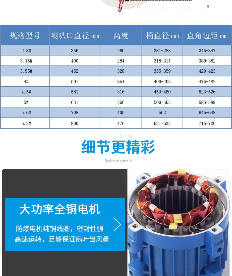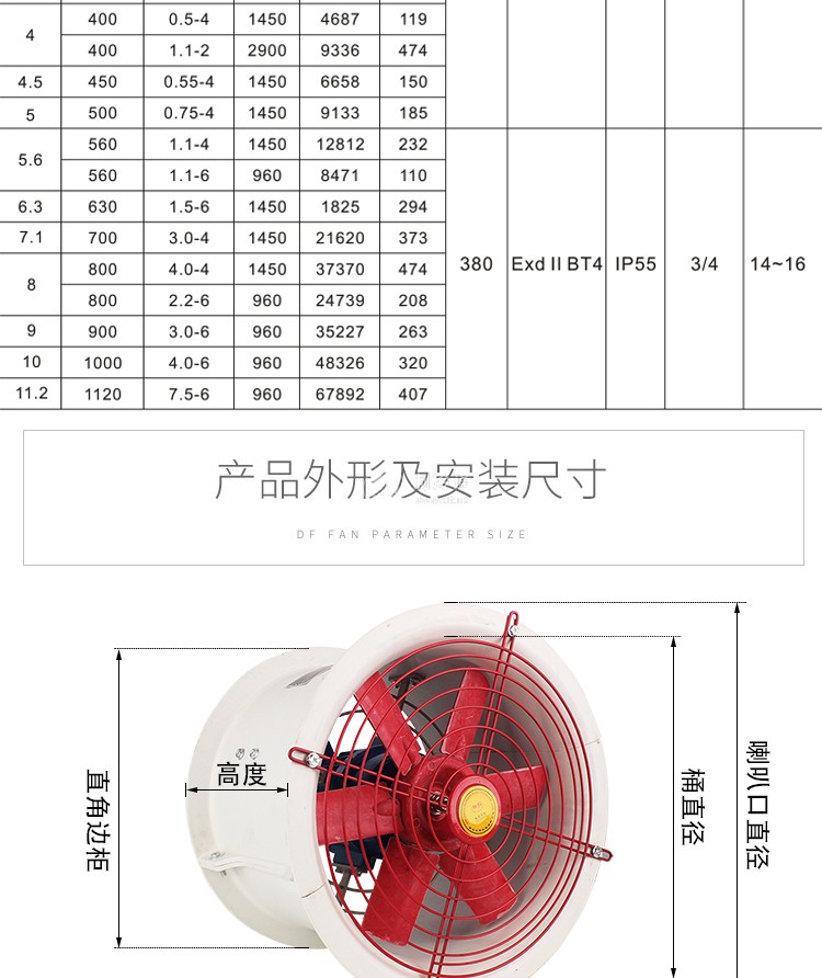 詳細信息 防腐防爆軸流風機 FBT35-11-3.15# 功率:0.25kw 風量:2273m3/h 轉速:1450r/min 全壓:74pa 百葉窗、固定式與崗位式各加30元 了解詳情可咨詢客服