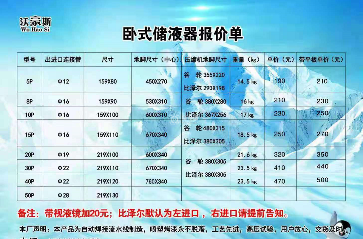 本公司常年生產各型號定制款臥式儲液器,請來電咨詢,報價單如下:
