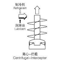 從壓縮機(jī)輸出的帶有縣浮油顆粒的氣態(tài)制冷劑進(jìn)入到油分離器中,帶有縣浮油顆粒的氣態(tài)制冷劑與螺旋式導(dǎo)流板相接觸,并且沿導(dǎo)流板旋轉(zhuǎn)流動(dòng)。油顆粒在離心力的作用下,被分離到螺旋式導(dǎo)流板的邊緣處和油分離器的桶壁上,存這里被分離出來(lái)的油顆粒聚集成較大的油滴流入油分離器底部的油收集區(qū)。我們?cè)诼菪綄?dǎo)流板的下部設(shè)計(jì)了一個(gè)碳狀導(dǎo)流置,它可有效的防止被分離出來(lái)的油滴再次飛散。導(dǎo)流置下面又設(shè)計(jì)了一個(gè)碟狀反射屏,反射屏的獨(dú)持設(shè)計(jì)使得油收集區(qū)域被獨(dú)布分隔出來(lái),它可以防止油分離器內(nèi)流速過(guò)高時(shí)油收集區(qū)域內(nèi)的油被帶走。
