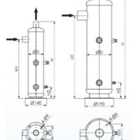 F-66Q系列儲(chǔ)油式油分離器是針對(duì)安裝電子油位控制器的并聯(lián)式壓縮機(jī)機(jī)組設(shè)計(jì)的。它可以將分離出來(lái)的潤(rùn)滑油儲(chǔ)存在下部的儲(chǔ)油段內(nèi)。依靠油分離器和壓縮機(jī)曲軸箱之間的壓力差,通過(guò)電子油位控制器將潤(rùn)滑油直接輸送到每一臺(tái)壓縮機(jī)曲軸箱。