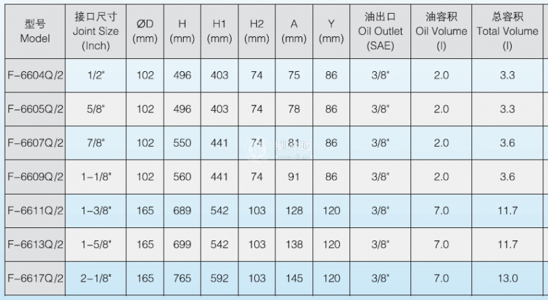F-66Q系列儲油式油分離器以其離心式分離的特點,可在引起最小壓降的情形下達到非常好的分油效果。F-66Q系列儲油式油分離器以其離心式分離的特點,可在引起最小壓降的情形下達到非常好的分油效果。