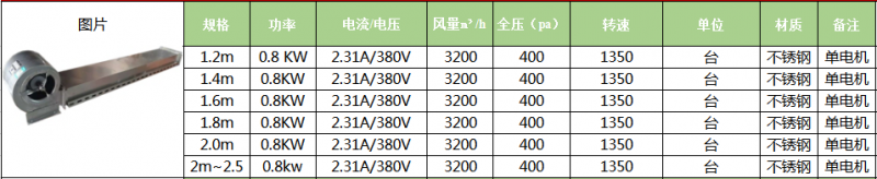規(guī)格:1.2m 0.8kw 電流/電壓:2.31A/380V