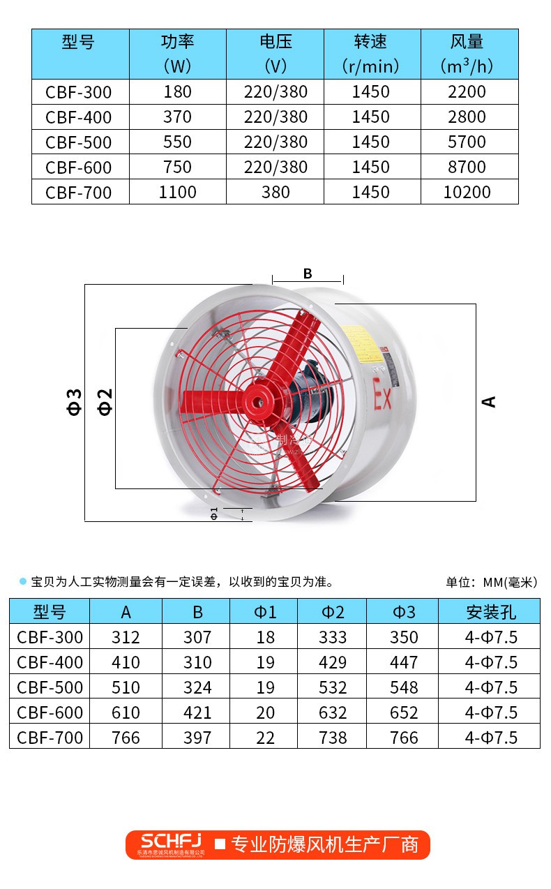 防爆軸流風(fēng)機(jī) CBF-300  功率:0.18kw   風(fēng)量:2280m3/h   轉(zhuǎn)速:1450r/min