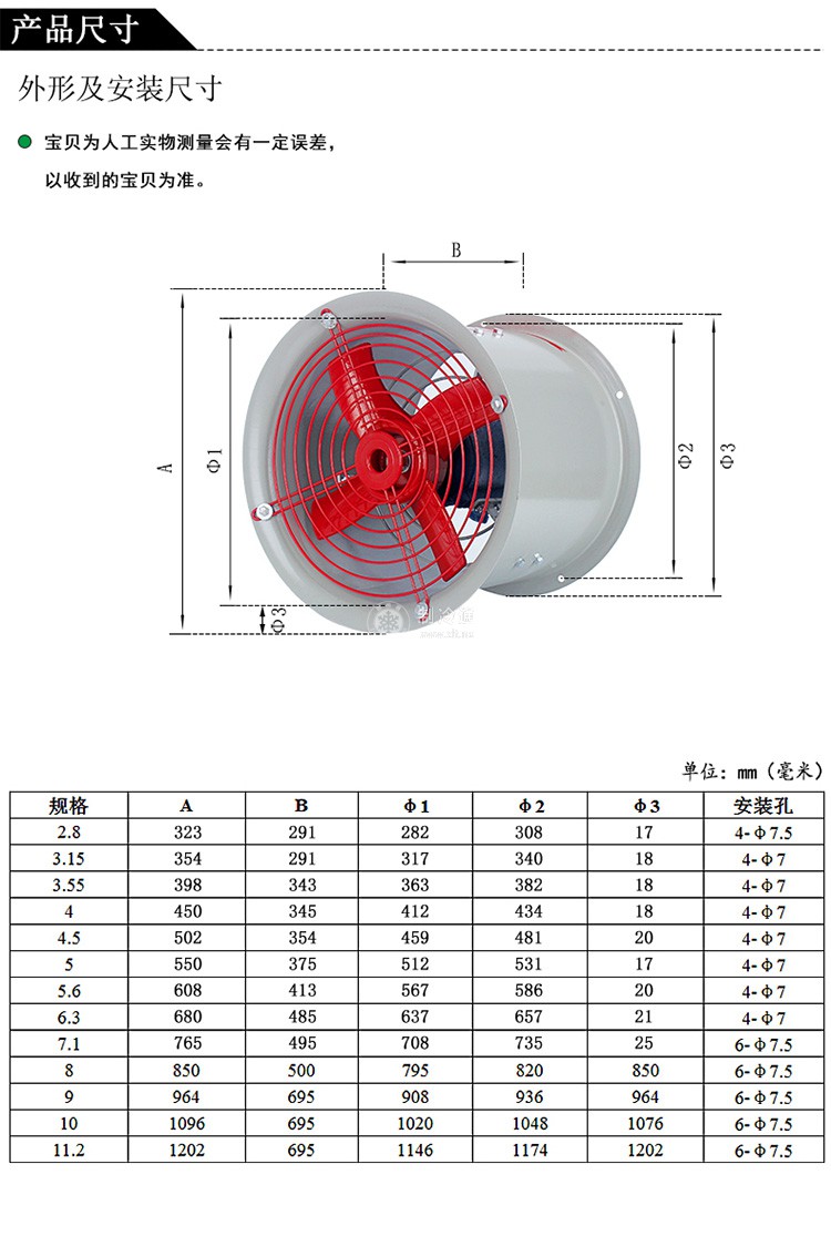 防爆軸流風(fēng)機(jī) BT35-11-2.8# 功率:0.18kw 風(fēng)量:1650m3/h 轉(zhuǎn)速1450r/min 全壓:60pa