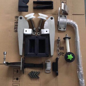 中型冷庫移門配件 包含:吊架、上導輪、下導論、脫線、內開盒、壓緊側軌道、升降塊、防撞后限位、外開門器、側壓緊