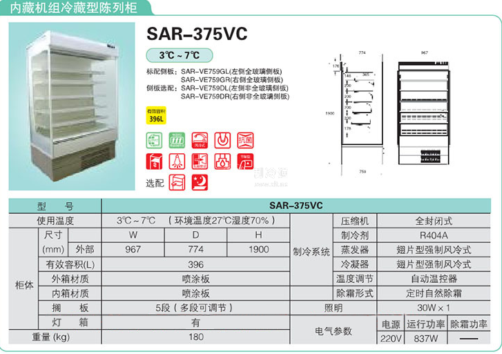 供應日本松下PANASONIC SAR-375VC風幕式冷藏展示柜