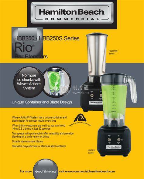 特征:適合使用15-24杯/日;低 / 高雙速 及 脈沖(點動);20秒(0.5L/16oz)制作時間;適用顆粒冰、碎冰;橡膠離合器:有CCC、NSF認證