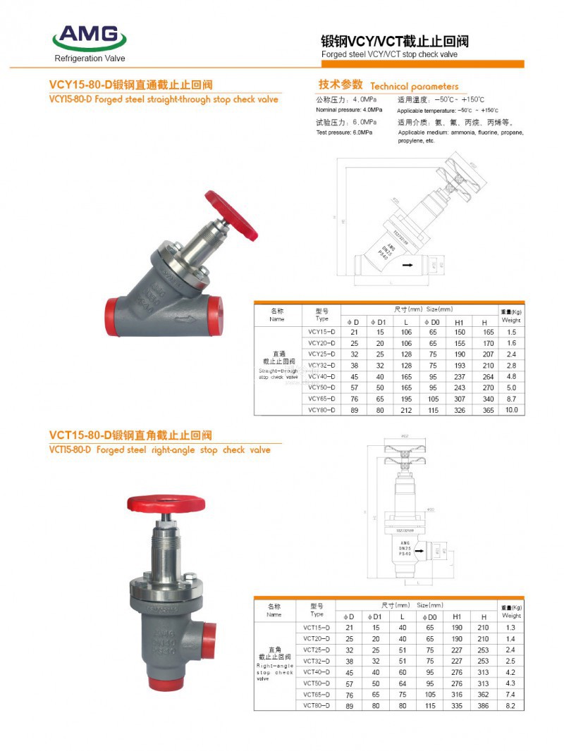 AMG DN80直通截止止回閥VCY和直角截止止回閥VCT系列