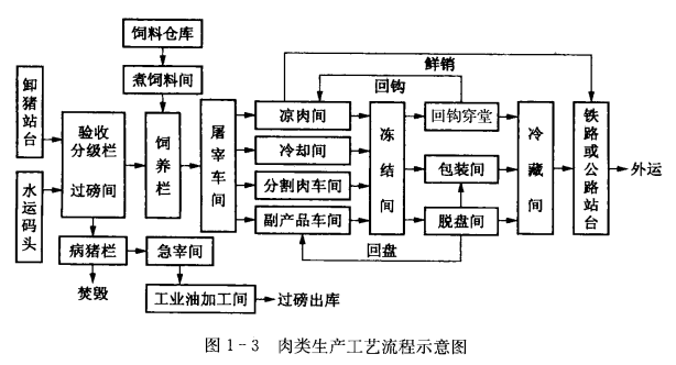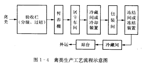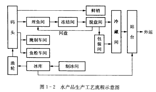 水產品、肉類和禽類冷加工的工藝流程如圖1-2、圖1-3和圖1-4所示。