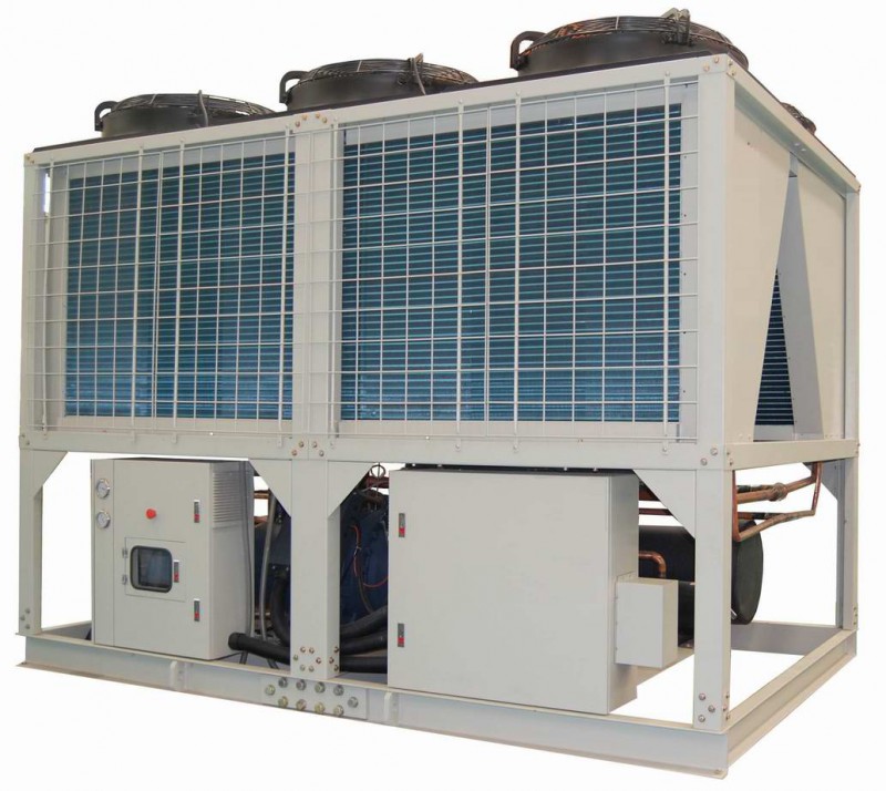 目前市場上常見的山東風(fēng)冷螺桿式機(jī)組,絕大多數(shù)為多機(jī)頭機(jī)組。風(fēng)冷式冷水機(jī)組工作流程與水冷機(jī)組大致相同,所不同的是水冷式機(jī)組的冷凝器采用殼管式換熱器,而風(fēng)冷式機(jī)組的冷凝器采用翅片式換熱器。風(fēng)冷式冷水機(jī)組的特點如下: