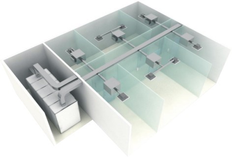 變風量空調系統都是通過特殊的送風裝置來實現的,這種送風裝置統稱為“末端裝置"。變風量未端裝置的主要作用是根據室內負荷的變化,自動調節房間送風量,以維持室內所需室溫。除此之外,還應滿足以下幾點: