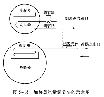 加熱蒸汽量調節法是以蒸發器冷媒水出口處的溫度為信號,通過調節加熱蒸汽量來改變制冷量的,如圖5-18所示。
