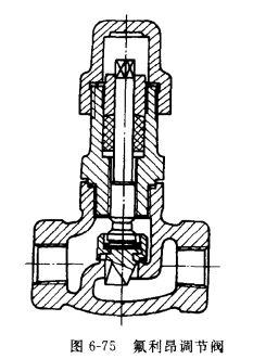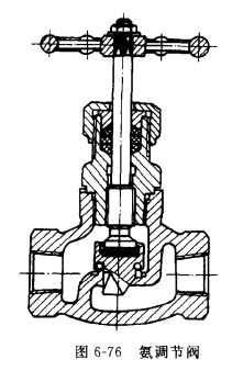 手動調節閥實質上是節流閥,安在蒸發器前往往又稱之為膨脹閥,圖6-75為氟利昂用手動調節閥,圖6-76為氨用手動調節閥。