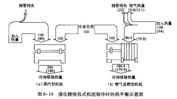 溴化鋰吸收式機組制冷時的熱平衡示意圖如圖6-14所示。由圖6-14可知,節能運行過程中,應考慮以下問題: