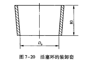 活塞連桿在裝入機體之前應抹上冷凍油,活塞環鎖口應錯開,對于順流式的制冷壓縮機切忌鎖口正對吸氣口,以免造成卡斷活塞環或“拉毛”汽缸事故。裝配活塞連桿組時,可借助活塞環裝卸套,緩緩裝入汽缸即可,如圖7-20所示。圖中D0與汽缸直徑一致。