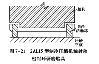 為使零件研磨均勻,應根據零件的特征,制作一胎具,一邊研磨一邊旋轉。如圖7-21所示為2AL15型制冷壓縮機軸封動密封環研磨胎具。