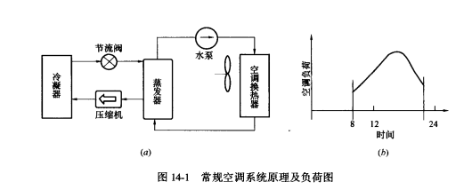 圖14-1(a)是常規(guī)空調(diào)系統(tǒng)原理圖;14-1(b)是空調(diào)負荷圖。