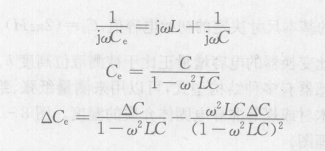 由等效電路可知,等效電路有一個諧振頻率,通常為幾十兆赫茲。當工作頻率等于或者接近諧振頻率時,諧振頻率破壞了電容的正常工作。因此,應該選擇低于諧振頻率的工作頻率,否則電容式傳感器不能正常工作。同時,由于電路的感抗抵消了一部分容抗,傳感元件的有效電容Ce將有所增加,可以由下式求得(為了計算方便,忽略Rs,Rp):