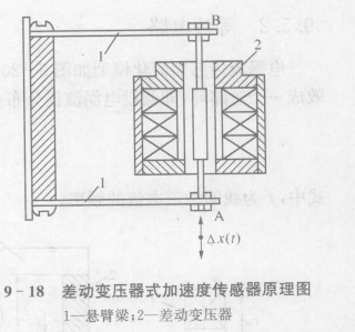 圖9-18所示為差動變壓器式加速度傳感器的結構示意圖。它由懸臂梁和差動變壓器構成。測量時,將懸臂梁底座及差動變壓器的線圈骨架固定,而將銜鐵的A端與被測振動體相連。當被測體帶動銜鐵以△x(t)振動時,導致差動變壓器的輸出電壓也按相同規律變化。