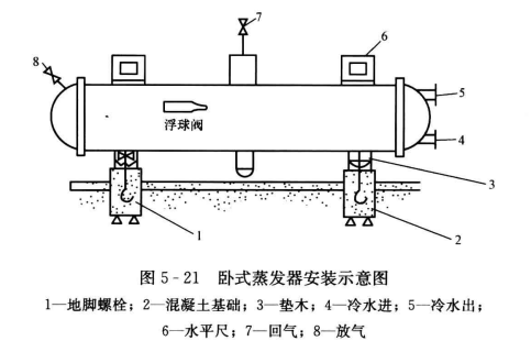 核心提示:臥式蒸發器通常安裝于室內的混凝土基礎上,用地腳螺栓與基礎連接。