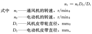 (2)現場無法用轉速表直接測風機轉速時,宜根據實測電動機轉速按下式換算出風機的轉速: