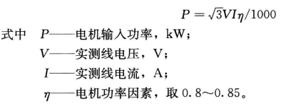 (2)采用電流表、電壓表測試時,應按下式計算電機輸入功率:
