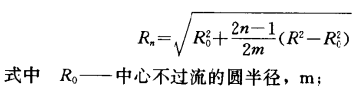 (2) 機械通風冷卻塔。機械通風冷卻塔的風量側點可布置在風機吸入側的收縮段喉部斷面,該處氣流速度比較高,約10m/s以上,所以可用畢托管和微壓計測量。測點也可在兩個相互垂直的直徑上按等面積環分布。有時在測量斷面的中心部分,被風機座占據一部分圓面積,所以等面積環的劃分用下面的公式: