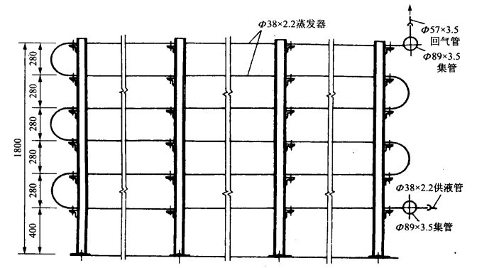 在氨重力供液系統和下進上出式氨泵系統中,氨液由下部供如供液集管,而后順次流經各層橫管,吸熱蒸發后形成的氣體或氣液混合物,則經設置于排管仁部的回氣集管排入回氣管道。