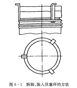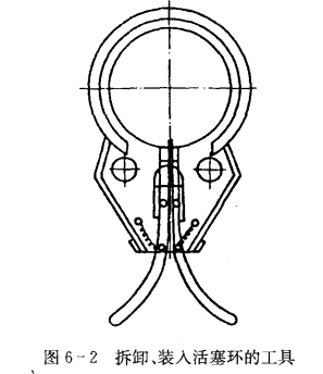 ③用專用工具拆卸汽環和油環,如圖6-2所示。