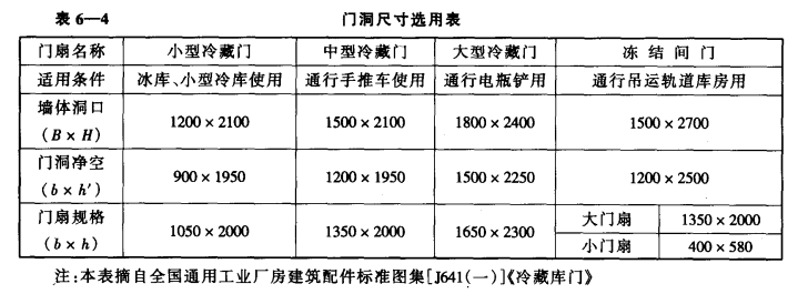 ()門洞尺度應(yīng)符合生產(chǎn)使用要求門洞尺度應(yīng)根據(jù)庫(kù)房貯存貨物和運(yùn)輸方式而選用,以滿足生產(chǎn)使用要求。門洞尺寸選用可參考表6-4。