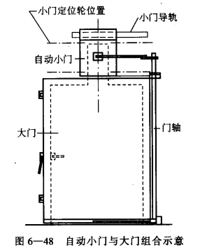 冷庫(kù)門立面圖見圖6-476-48所示。圖6-48為帶自動(dòng)接斷吊軌小門示意圖。
