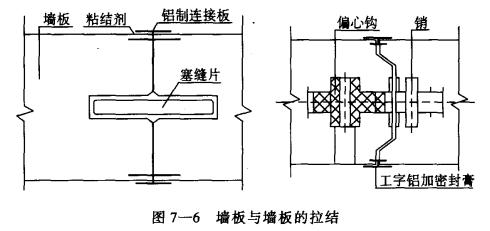 頂板與頂板的相互拉結(jié) 頂板吊裝平鋪于鋼結(jié)構(gòu)框架螺栓固定,其拉結(jié)方法參見圖7-6。