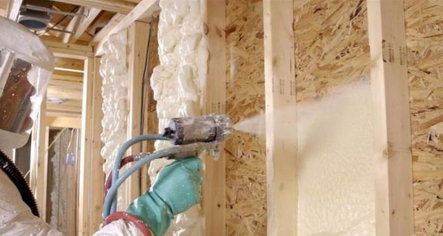 施工中噴槍和被噴涂工作面應(yīng)盡量保持垂直角度,噴槍口與噴涂工作面的距離控制在500mm左右,噴涂時(shí)應(yīng)使泡沫體表面盡量平整,無明顯收縮,無脫殼現(xiàn)象。其外觀色澤略呈微黃色,其泡孔均勻細(xì)密呈閉孔結(jié)構(gòu),其表面狀態(tài)應(yīng)達(dá)到不疏松、不脆、不發(fā)軟。
