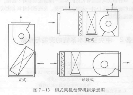 其結構形式有立()式和臥式(見圖7-13),安裝形式有落地式和吊頂式。它既可以用于處理新回風混合空氣,又可以用于處理全新風(此時俗稱新風機或新風柜)。