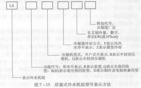 2、活塞式冷水機組型號表示方法(見圖7-15)