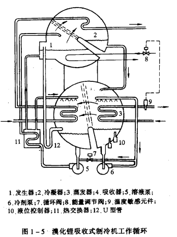 溴化鋰吸收式制冷機的工作循環如圖1-5所示。