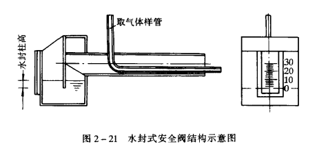 圖2-21為水封式安全閥結(jié)構(gòu)示意圖。它具有結(jié)構(gòu)簡(jiǎn)單、工作可靠的特點(diǎn),因此,廣泛應(yīng)用于氣調(diào)庫(kù)中。