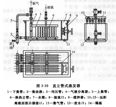 直立管式蒸發器的優點是傳熱性能好,由于充水量大,凍結的危險小。缺點是體積龐大,金屬消耗量大,由于水或鹽水直接暴露在空氣中,所以對金屬的腐蝕比較嚴重。