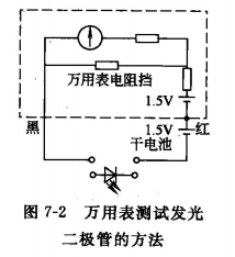 LED數碼管是將若干段的條狀發光二極管排列成數字圖形的二極管,一位LED數碼管中7個筆段各由一個發光二極管擔當。這7個發光二極管有共陰極和共陽極兩種接法。數碼管正常發光時每段工作電流為5~10mA,全部點亮時電流為40~80mA。測量每一個筆段發光二極管的方法與測量單個發光二極管相同。用圖7-2所示電路測試時,對于共陰極接法的LED數碼管,將公共陰極與外接干電池的負極相接,萬用表黑表筆依次測各筆段引出線,在正向導通的同時,可以看到對應筆段發光。如某個筆段不通或不亮,則說明這一筆段的發光二極管已壞。對于共陽極接法的LED數碼管,則將公共陽極與萬用表黑表筆相接,LED發光二極管的筆段引出線與外接干電池的負極接觸.判斷好壞的方法與共陰極接法的LED數碼管相同。