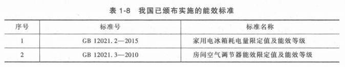 我國的能效標(biāo)準(zhǔn)均為強(qiáng)制性標(biāo)準(zhǔn),表18列出了目前涉及家用電冰箱、房間氣調(diào)節(jié)器設(shè)備等的能效標(biāo)準(zhǔn)。