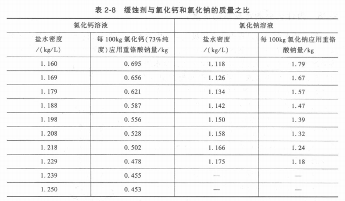緩蝕劑與氯化鈣和氯化鈉的質量之比見表2-8。