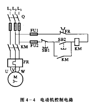 為了電氣設備的安全運行,當電動機或其他電器、電路發生短路事故時.電路本身必須有保護能力。短路保護由熔斷器、自動開關或兩者同時擔任。如圖4-4所示,主電路和控制電路分別裝由熔斷器FU]FU2作短路保護,當電動機或其他電器發生短路時,電路電流急劇增加很多倍,FU很快熔斷,使電路和電淵隔開.達到保護目的。