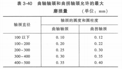 金屬噴鉸層厚度為0.5~1. 2mm為好,最厚可達(dá)4mm。太厚不牢固,易脫落;太薄強(qiáng)度不夠,也易脫落。有時(shí)采用噴鍍前將軸頸車小1.6~2.0mm,經(jīng)噴鍍的表面都需經(jīng)過(guò)加工,恢復(fù)到原來(lái)的尺寸,見(jiàn)表3-40。