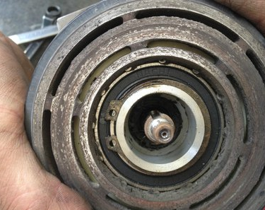 軸封只有開(kāi)啟式壓縮機(jī)中才使用,全封閉式或半封閉式壓縮機(jī)中沒(méi)有軸封。軸封容易發(fā)生漏氣漏油。造成軸封不密閉的原因是:固定環(huán)與活動(dòng)摩擦環(huán)的密封面接觸不良、彈性圈(耐油橡膠圈)老化以及軸封彈黃的彈力不足所致。