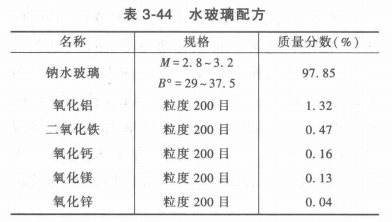 水玻璃的配方見表3-44。為了加速浸滲液硬化,可采用自然干燥和加熱干燥相結(jié)合的辦法,以促使其干燥速度加快。